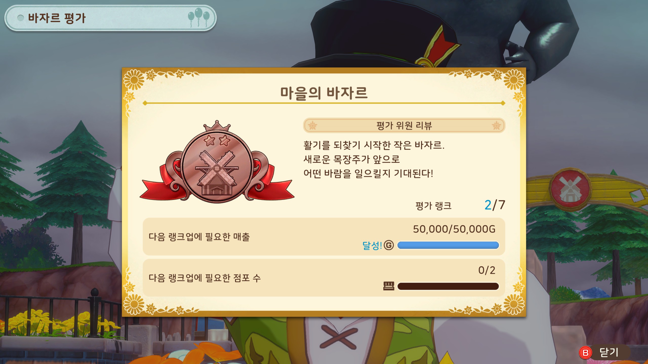 - 아침에 일어나면 광장의 바자르에서 마을의 바자르 랭크 업 이벤트