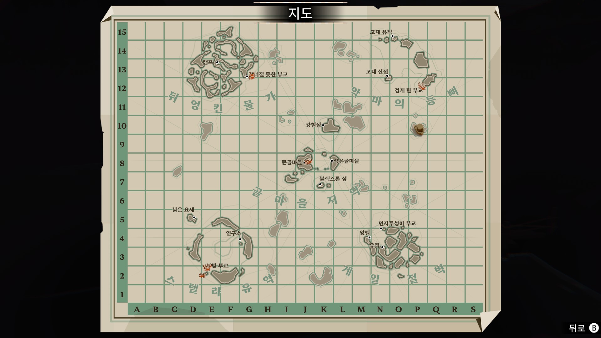 2. P10 3개의 섬 가운데에 상륙할 수 있는 부두가 있음. 여기서 늙은 시장과 조우