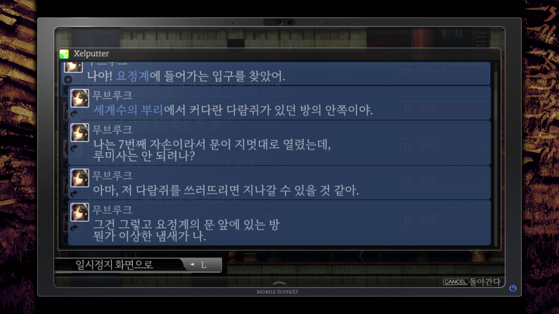 > 성배방으로 가보면 무브루크의 거점이 있다. 요정계의 길이 막혀있으니 무브루크를 보내놓자. 이러면 탐험 힌트를 메시지로 보내준다