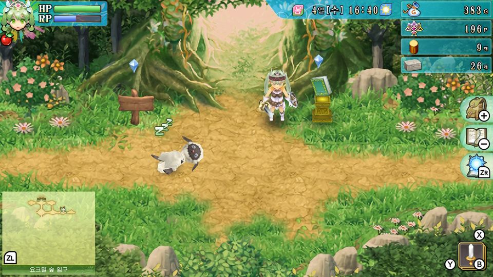 해머로 밭의 돌을 전부 정리 후, 요크밀 숲으로 이동하면서 광석 다 정리. 그러면 RP가 동날텐데, 어제처럼 보물상자 노가다로 RP 채울 음식 확보하고 먹어두자
