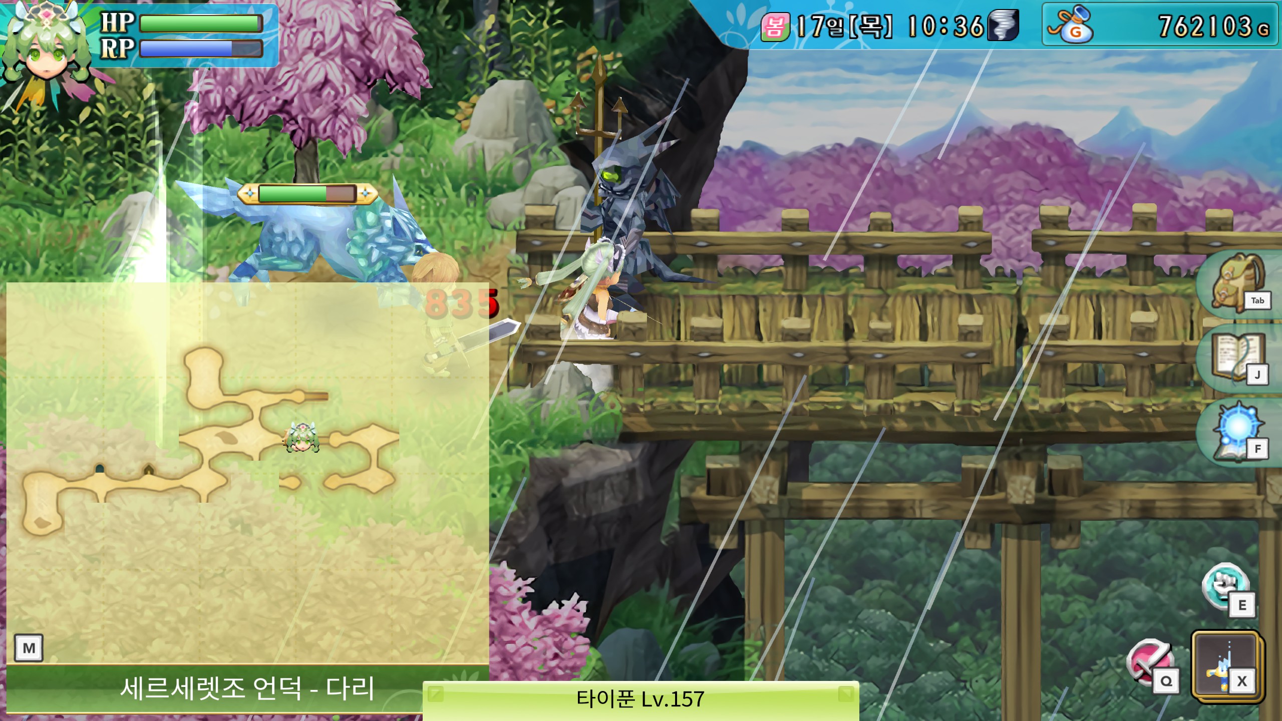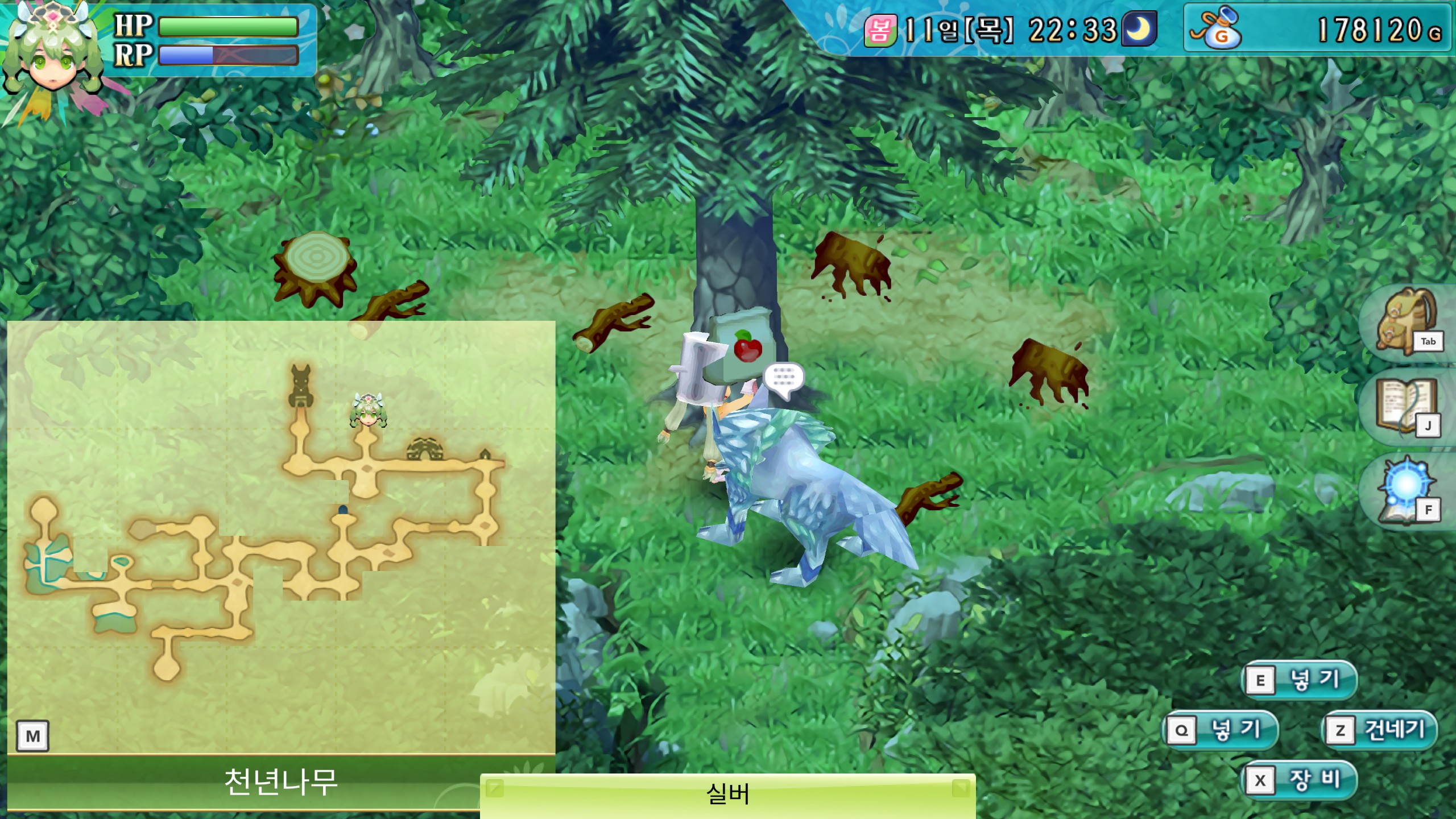 이제부터는 매일 시아렌스 돌거나 하는게 일상의 끝이므로, 특기할 사항이 있는 날에만 코멘트를 적겠다> 1년차 여름 1일 {바캉스}계절의 바뀌었으므로, 세르세렛조 언덕의 수정 나무에게 녹수정을 얻어서 심어둔다여름 한정으로, 마을 좌하단의 해변에 신부/신랑 후보가 가면 수영복을 입는다. 이때 각각 특수대사 존재의도적으로 보고싶으면, 옷가게에서 수영복을 구매 후 옷장에서 수영복으로 환복하면 바로 볼 수 있다 또한, 매 계절 월 초(1~5일) 한정으로, 이쪽으로의 통행이 해제된다최심부에서 보스 너굴 총각 격파 후 던전 씨앗 획득 가능 어제에 이어서 상태이상 스킬 노가다다만, 오늘은 드디어 수면 성장 스킬을 해금하느라, 1시 전에 취침 > 1년차 여름 5일밭 관리를 잘 했으면, 아마 오늘 밭 던전이 다 자랐을 ..