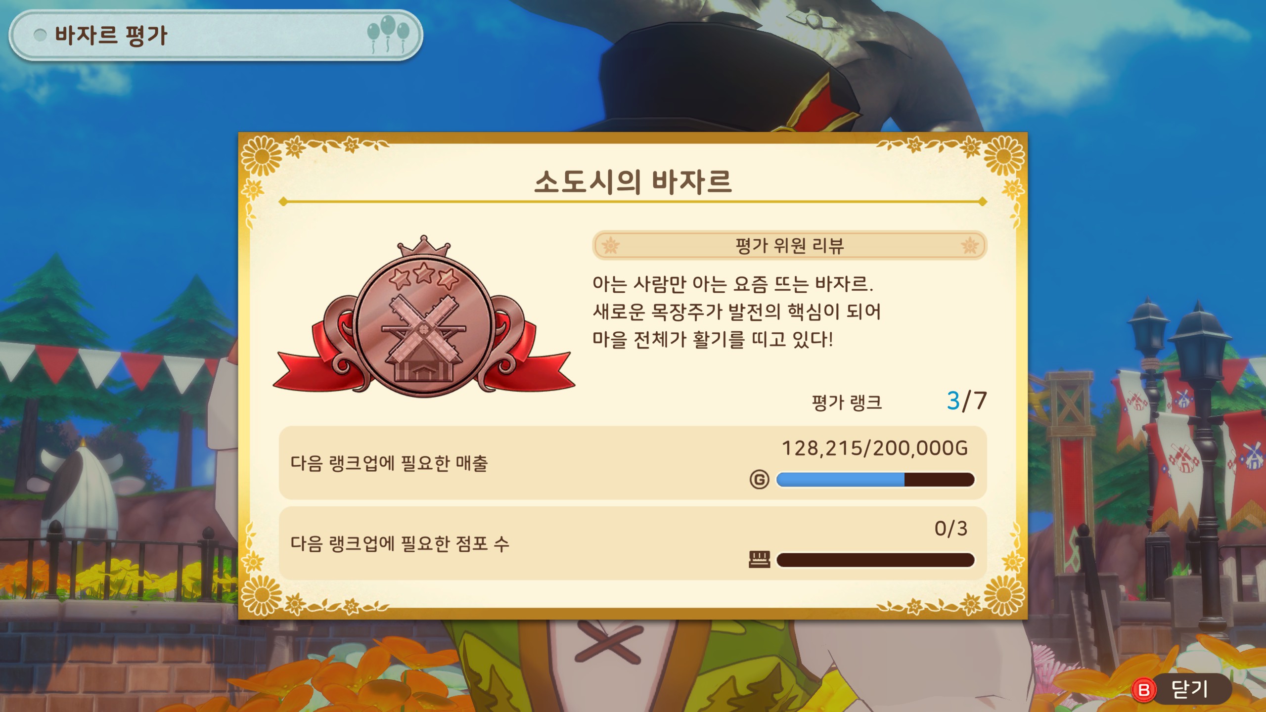 >>> 금주 목표:1. 가게 3개 (아라타 + 고란 + 광석) 해금2. 금 손도끼 or 물뿌리개 1개라도 도달 봄 16일 (일) [셸파 생일]- 기상시 소도시의 바자르 승격 이벤트 - 이벤트 쭉 감상하고 다 제쳐두고 집으로 복귀 후 세이브오늘 포함 이후 처음으로 강풍인 날에, 마을 우하단에 이벤트가 하나 등장한다이걸 따라면 코로보쿠르 집에 도착하고, 채집물 등급 상승이 해방된다 좋아하는 선물은 매 토요일 취침시 결정된다. 어제 저장한 이유*** 이제, 다음 과정으로 좋아하는 선물을 결정하자 ***1. 일단 집에 도착해서 세이브2. 처음으로 강풍인 날까지 넘기기 (오늘 강풍이면 바로 이동)3. 집 이동후 채집 코로보쿠르 (보라색 옷) 선물 체크4. 원하는 선물이면 집 세이브, 아니면 전날 세이브 로드해서..